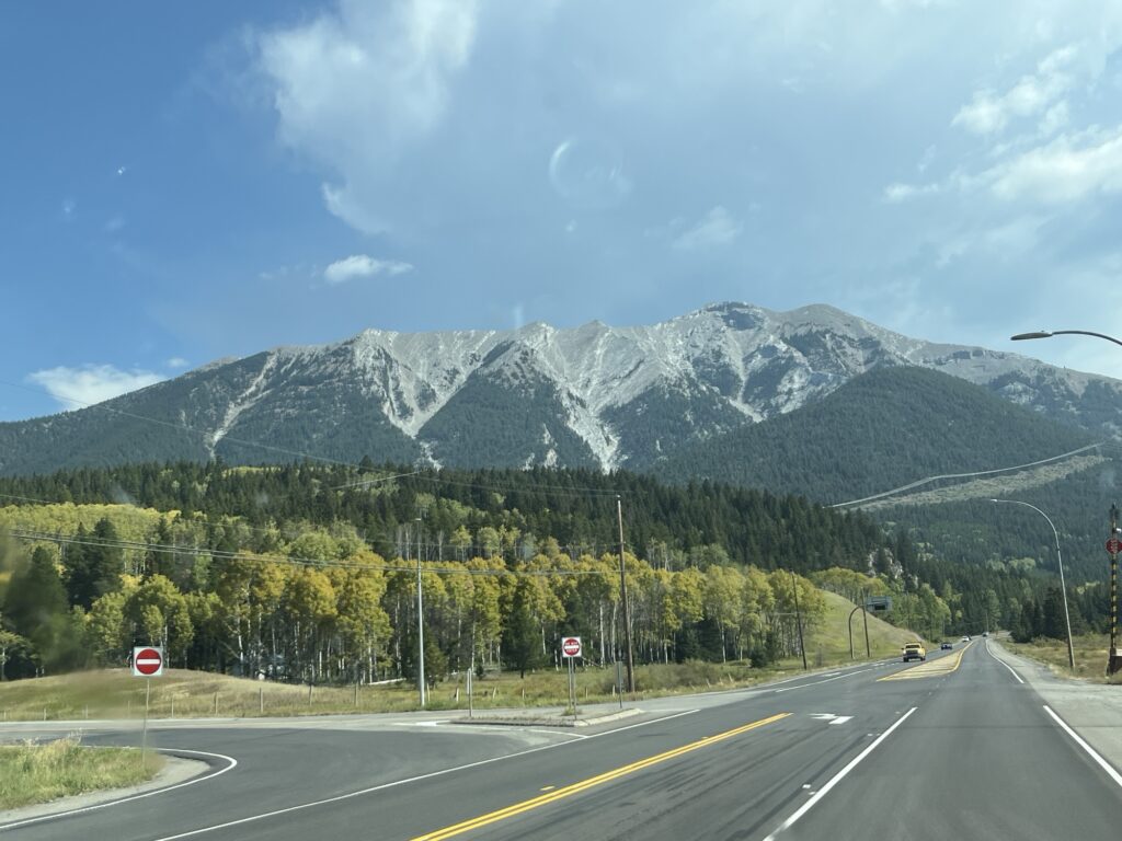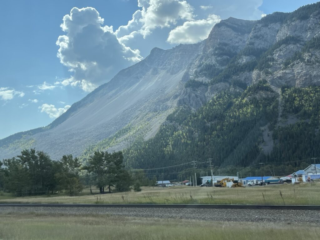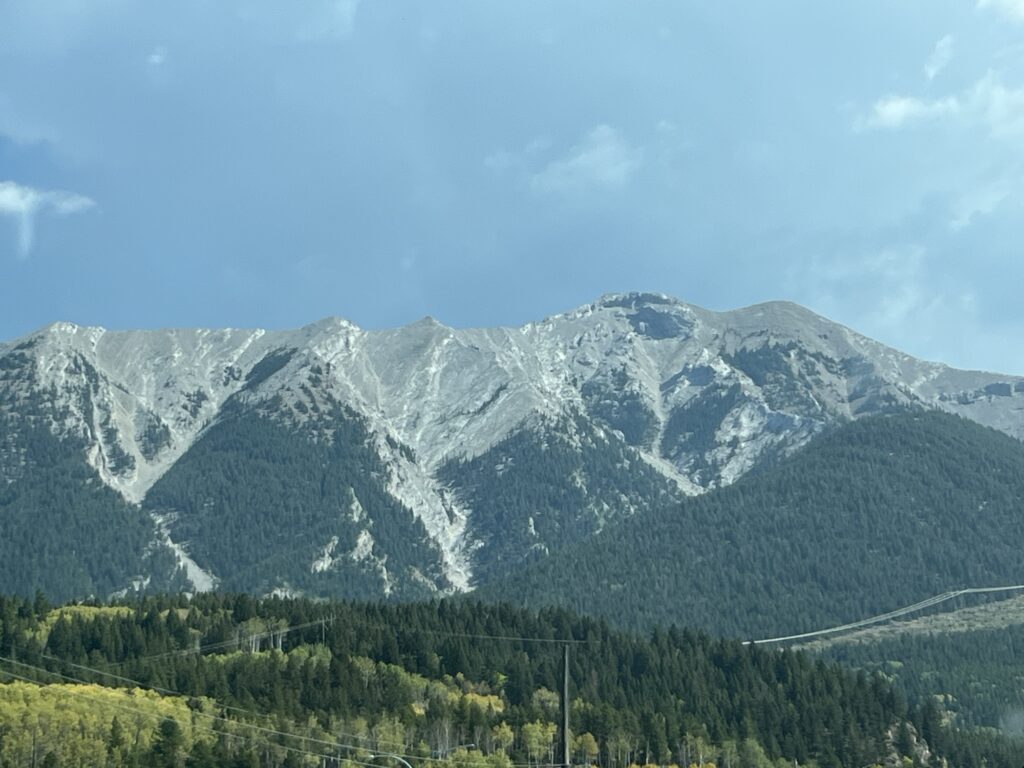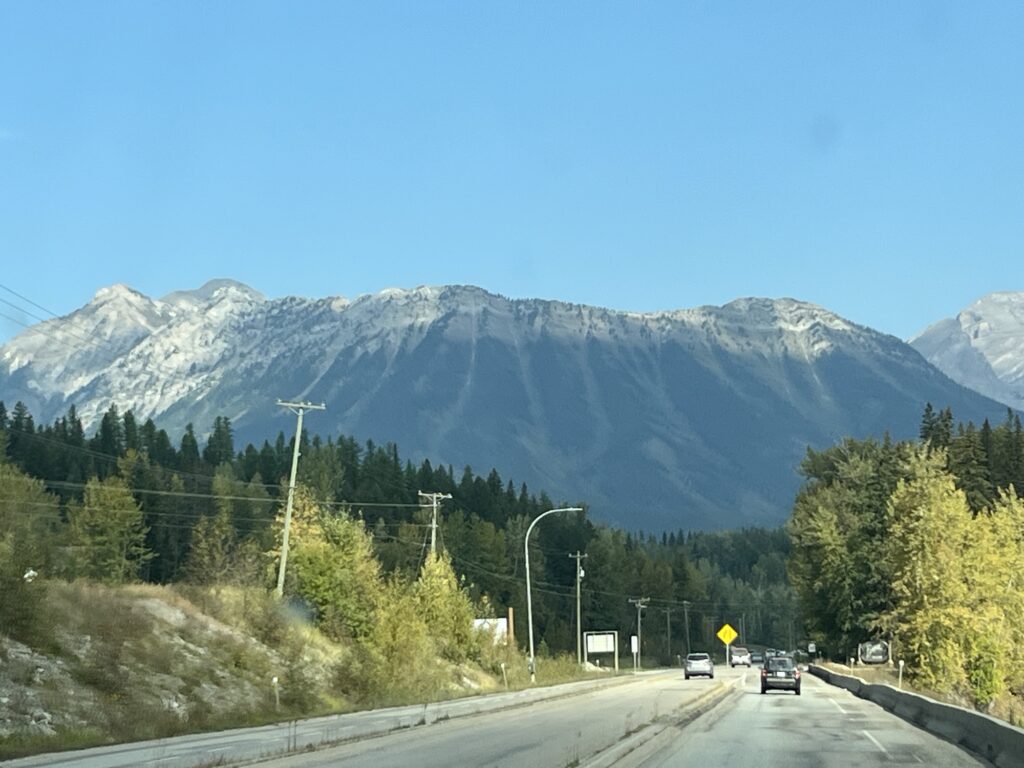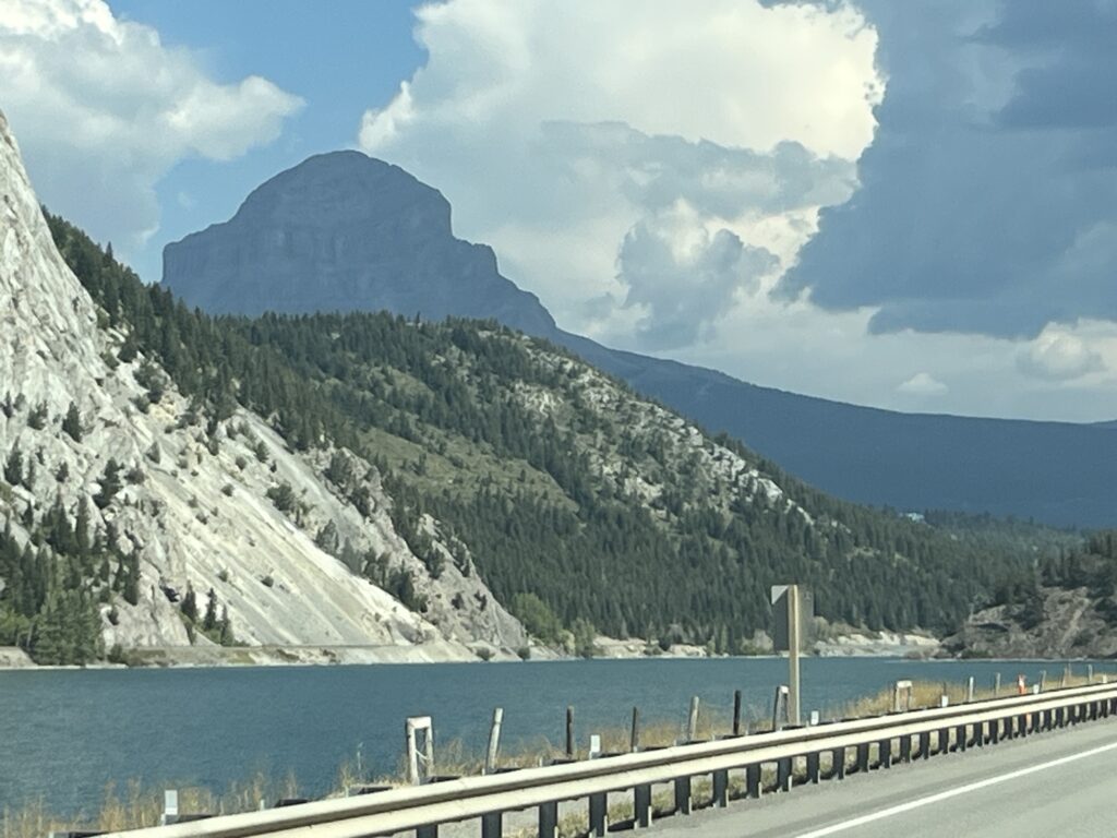 The day started with a drive South towards the Crowsnest Pass (Hwy 3). The road down the valley is wonderful, easy to drive and not too busy. When we get to Hwy 3, traffic is heavier but moves well. We drove this road last year and enjoyed the views of the mountains as much this year as last.