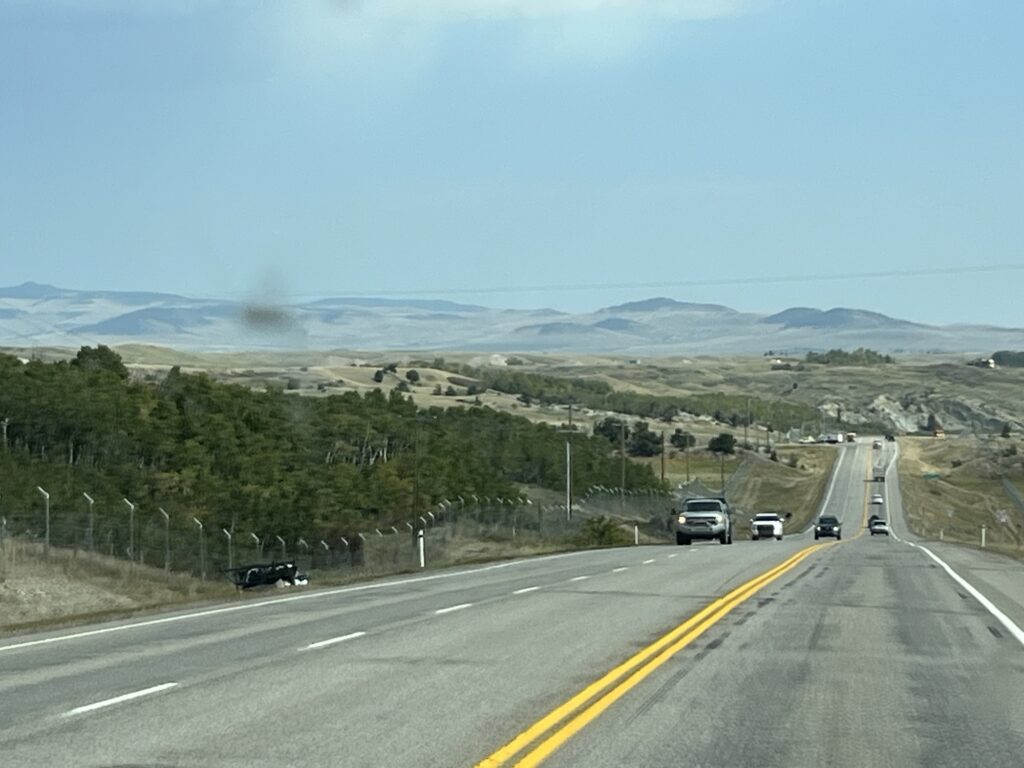 After Fernie the road passes through the actual Crowsnest mountain pass and then descends to the grasslands of southern Alberta. Barb takes on the driving chores and navigates us into Lethbridge where we stop for fuel before turning South towards Coutts on Hwy 4.
