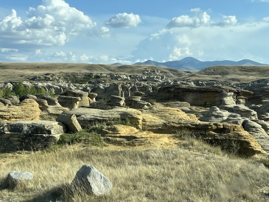 Today, we’re back on the road again, this time heading to southern Alberta where we have a camping reservation at Writing on Stone provincial park near the town of Milk River a little north of Coutts.