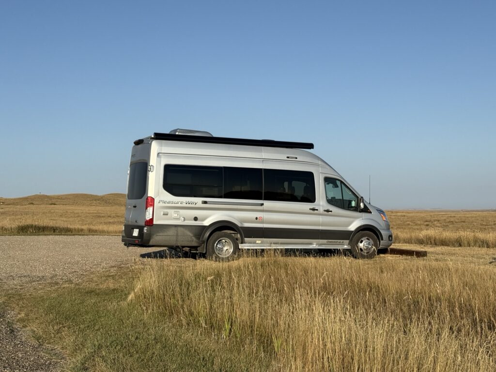 At about 4:15pm we pulled into Rock Creek Campground and setup for the night. We have an electrical site (30A) with a water tap nearby. There is no cellular coverage here and so we setup our Starlink Mini to provide us with ample internet bandwidth for the night.