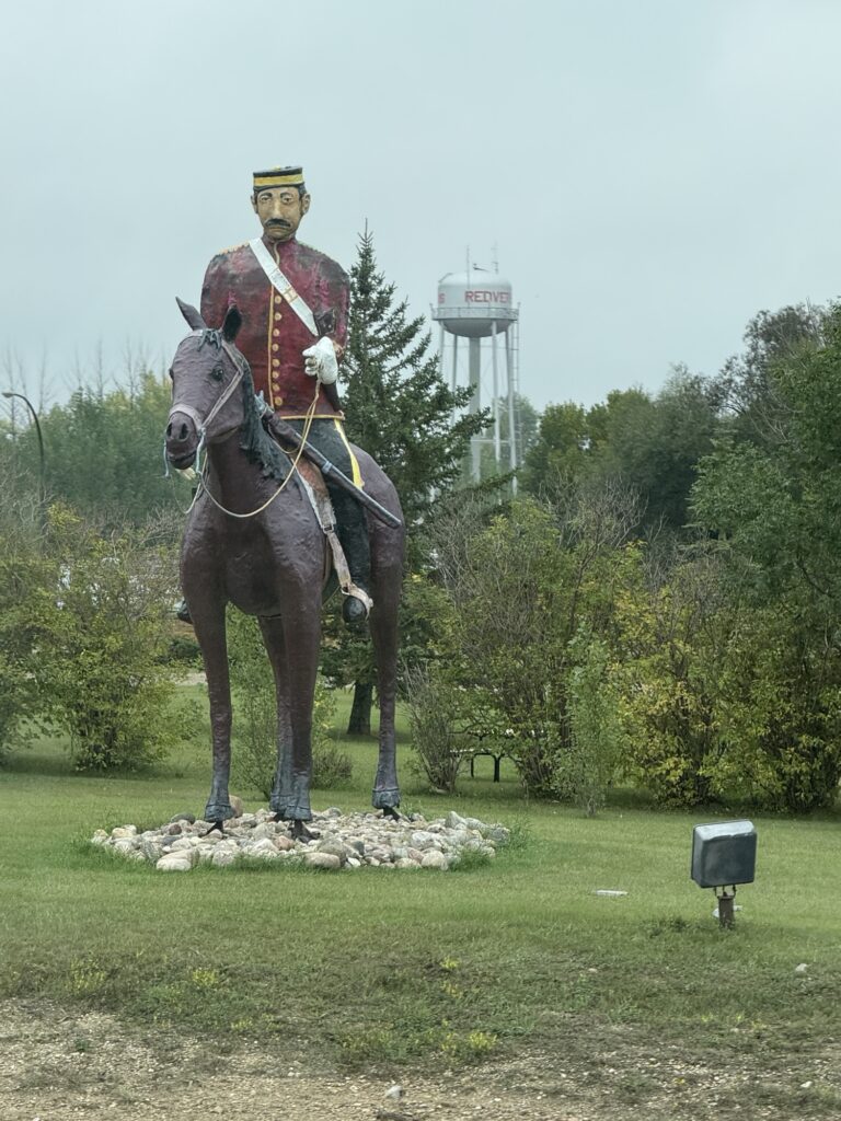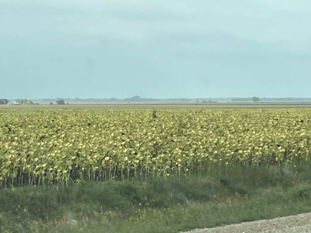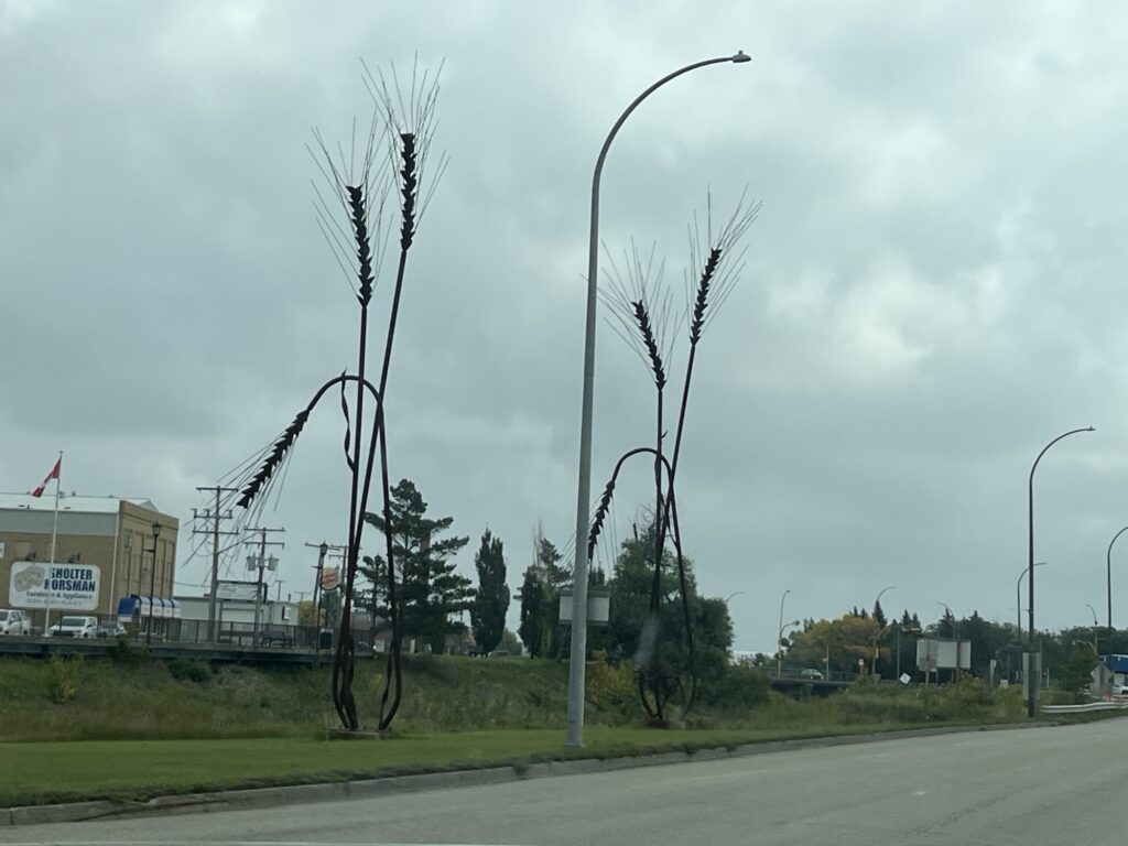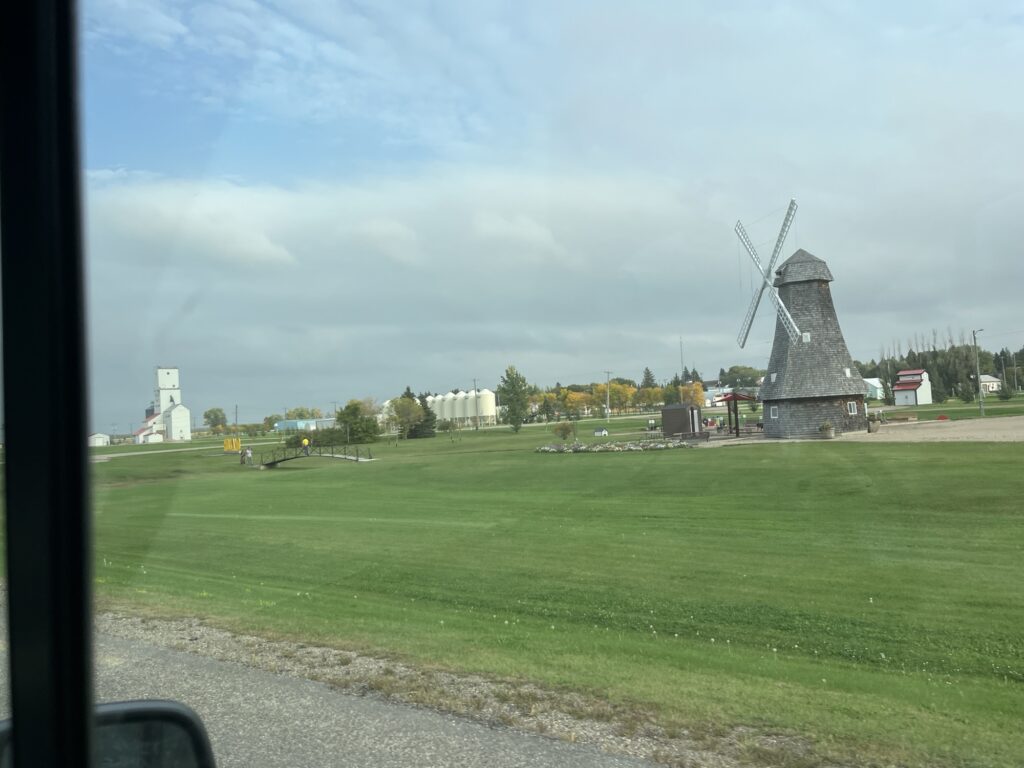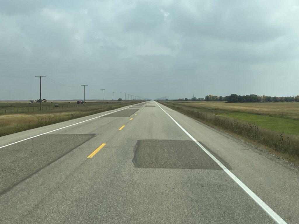 We stopped for a picnic lunch and changed drivers in Weyburn before continuing. Neither the road or the landscape changed and after some time we arrived in Manitoba where we stopped for fuel in Souris. The skies had darkened throughout the day and we were now driving through some light rain showers.